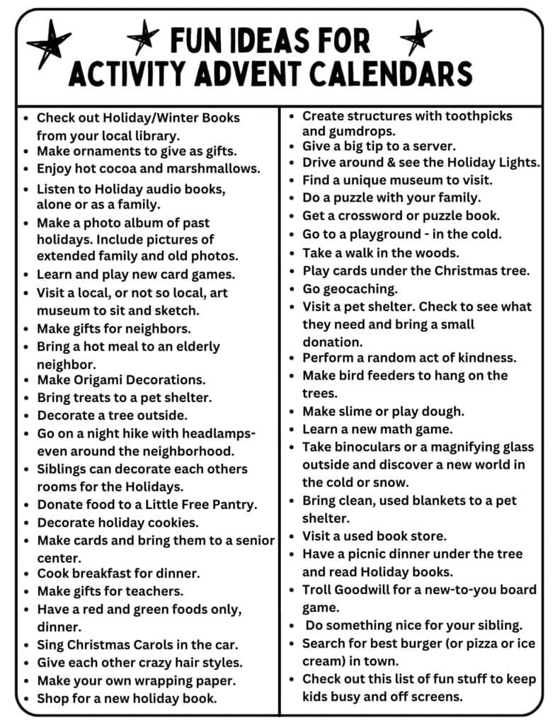 If you are looking for some easy activities to add to your advent calendar, these will be easy to add in with little effort and lots of fun.