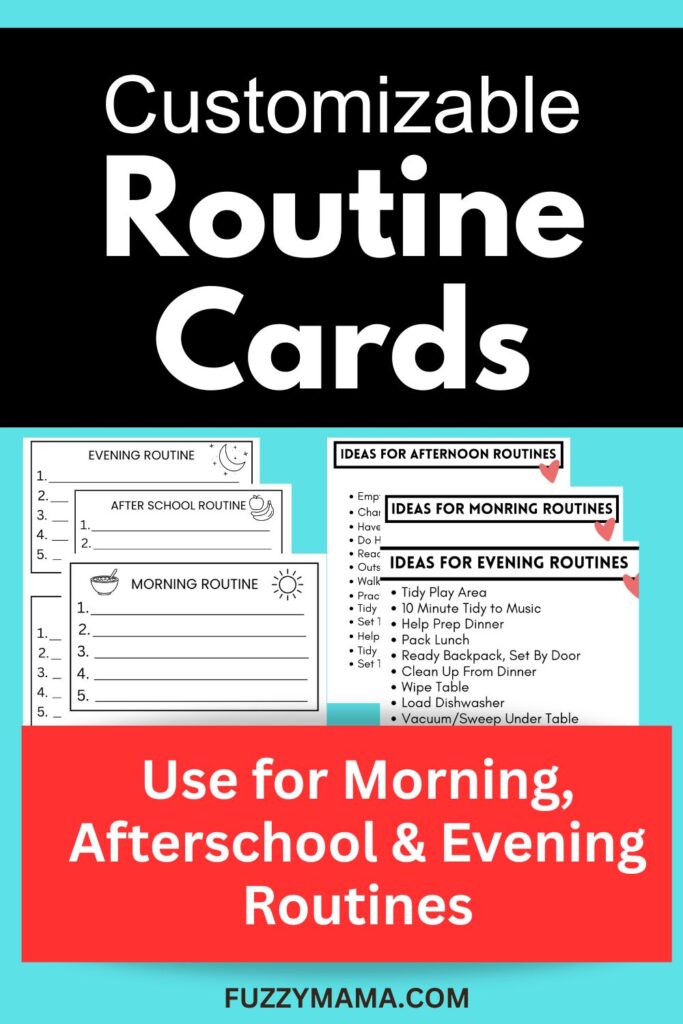 Click on the image below for Free Downloadable Routine cards you can customize for your kids.