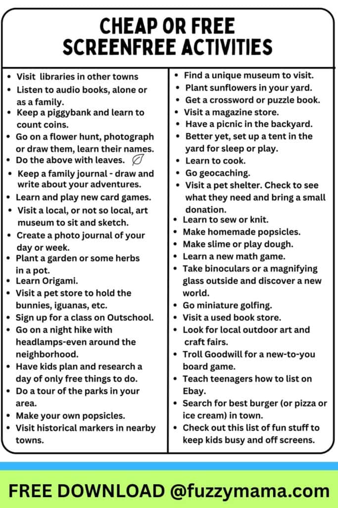 Be sure to brainstorm all the other activities they could be doing besides being on a screen. It might be super helpful to document these ideas on a big poster, so kids are reminded of all the fun things available to them that do not involve screens.